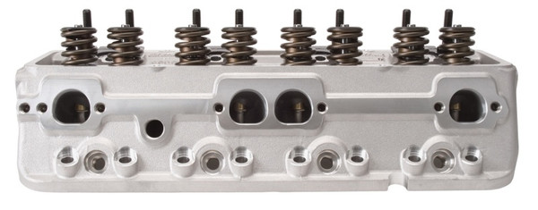 Cylinder Head Specifications: Combustion chamber volume: 65cc / 70cc; Intake runner volume: 185cc & 195cc; Exhaust runner volume: 65cc; Intake valve diameter: 2.02"; Exhaust valve diameter: 1.60"; Valve stem diameter: 11/32"; Valve guides: Maganese Bronze; Deck thickness: 9/16"; Valve spring diameter: 1.46"; Valve spring maximum lift: .575"; Rocker stud: 3/8"; Guideplate: Hardened steel; Pushrod diameter: 5/16"; Valve angle: 23°; Exhaust port location: Stock; Spark plug fitment: 14mm x .750 reach, gasket seat. * Performer RPM Cylinder Heads have all of the same great features as our Performer series heads, but are available with straight or angled spark plug configuration to fit a variety of exhaust applications. Available with a polished finish for a show quality look! ** Match with Edelbrock head gasket sets. Bare heads will have valve guides and seats installed, but will require final sizing and a valve job to match the valves you will be using. To use stock rockers on small-block Chevy heads, .100" longer than stock pushrods are required. Edelbrock pushrods #9629 are recommended. Use Head Bolt Kits for easy installation. Recommended spark plugs are Champion RC12YC or equivalent 14mm x 3/4" reach with flat gasket seat. S/B Chevy heads may not be used on engines with less than 4" bore (262, 265, 283, 305, 307 c.i.d.) except with cams having less than .450" valve lift.