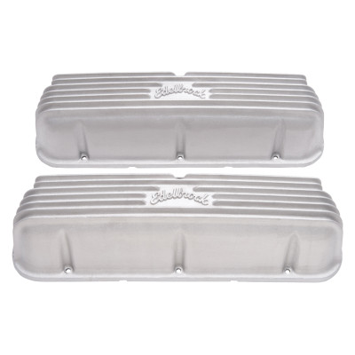Edelbrock first made these aluminum valve covers in the late 50s and theyre still a classic. Made of heavy-gauge sand-cast aluminum, our classic finned valve covers are available in either a classic polished aluminum or durable black powder.