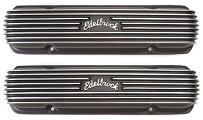 quick view Add to Cart Edelbrock Edelbrock Valve Cover Classic Series Chevrolet 1959-1986 262-400 CI V8 Black - 41453 MSRP: $389.99 Edelbrock first made these aluminum valve covers in the late 50s and theyre still a classic. Made of heavy-gauge sand-cast aluminum, our classic finned valve covers are available in either a classic polished aluminum or durable black powder. Add to Cart Add to Wish List Add to My Wish List Create New Wish List Compare