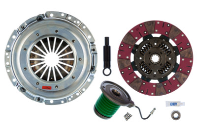 EXEDY cerametallic clutches are designed to handle the abuse of high power modified engines. Our cerametallic friction material can handle much more abuse than stock type disc assemblies without slipping and fading. All EXEDY Stage 2 cerametallic clutch discs have sprung center dampers to reduce the impact and shock loads transmitted through the drivetrain. We offer two types of cerametallic discs, ''thick'' and ''thin'' along with a cushion button disc. Thick Disc: The ''thick'' discs have better heat capacity and therefore better durability in demanding applications. Even with the ''thick'' disc, our three and four puck designs typically have less inertia than a stock disc and work well for street, rally and track use. Thin Disc: The ''thin'' discs offer greatly reduced inertia to improve shift effort, allow for quicker shifting, and improve synchro durability. These discs are approximately 1/2 the thickness of a stock disc and are recommended for circuit track use only. Cushion Button Disc: The remarkable Cushion Button Disc combines cerametallic button facing with marcel cushion springs to maintain comfortable driving while supporting a respectable amount of power. It?s smooth engagement is ideal for the street, and thanks to its heavy duty sprung hub dampening assembly, can handle the power of high torque motors. The Cushion Button Disc is currently available for limited applications, however more fitments will be released in the near future. Clutch Cover: These clutch covers are designed to achieve a clamping load that is approx. 40% higher than the genuine part allowing a higher torque transmitting capacity. Ductile material is used for all pressure plates and, high burst strength can be achieved in all temperature ranges. All EXEDY Racing Stage Ceremetallic Clutch Kits carry SFI 1.1 Certification. Which means, when you buy these products, you can be confident they are certified for use in competitive motorsports.
