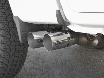 quick view Add to Cart aFe aFe Large Bore-HD 4in 409 Stainless Steel DPF-Back Exhaust w/Polished Tips 15-16 Ford Diesel Truck - 49-43122-P MSRP: $965.99 This DPF-back exhaust system is constructed of 4 IN mandrel-bent 409 stainless steel tubing for maximum strength and durability. Finishing off this exhaust system are dual 6 IN diameter polished 304 stainless steel clamp-on exhaust tips. The tips... Add to Cart Add to Wish List Add to My Wish List Create New Wish List Compare