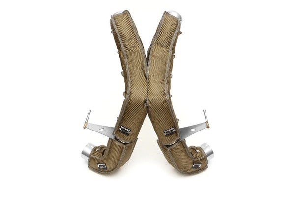 Included are Military Specification 2200 degree heat blankets consist of a stainless steel mesh over liner covering ceramic insulation that makes direct contact with exhaust pipes. Basalt fabric exterior cover sewn with 321 stainless steel mesh covering all edges and high quality 321 stainless steel spring fasteners.   These thermal blankets are the very BEST WORLD CLASS solution to stop heat and vibration for the worlds very best catback exhaust.