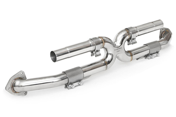 The 991 Carrera Center Muffler Bypass X-Pipe makes a great compliment to either the factory side mufflers or to Fabspeed's Maxflo Performance Side Exhaust System. This system substantially improves exhaust tone and saves weight by replacing the restrictive factory center muffler with a lightweight high-flow x-pipe.