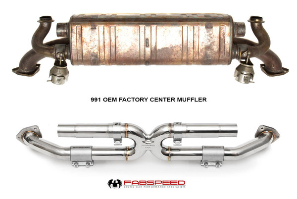 Fabspeed's 991 Carrera Center Muffler Bypass X-Pipe offers a substantially louder and more aggressive exhaust tone over the factory system.