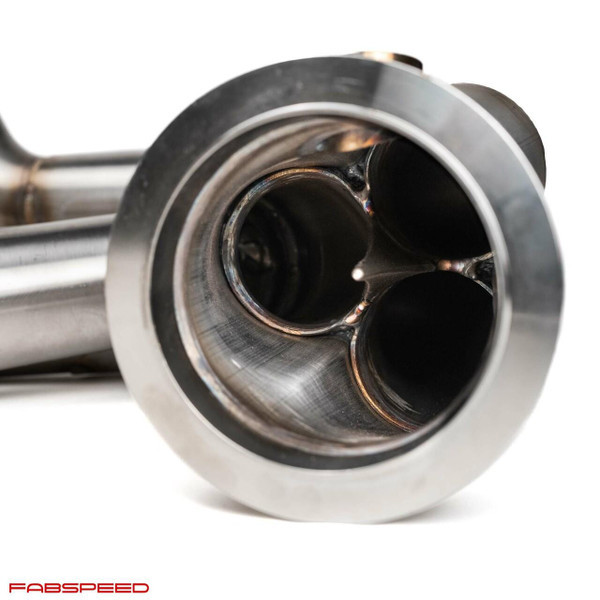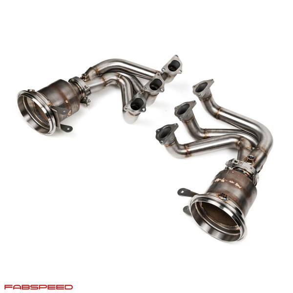 Fabspeed Motorsport USA, utilizing 25+ years of Air-cooled an Watercooled experience has made the 992 GT3 sound incredible with these high flowing headers. Equipped with our HJS German super premium 200 cell cats, you will get a more aggressive CUP car style exhaust note with a much more raw sound. Higher frequency tones are more defined, and deceleration burbles are more robust and transparent. With the cat bypass pipes installed, the GT3 turns into a motorsport bred Race Track ONLY monster. At part throttle the volume isn't overbearing, but the sound is very aggressive and race bred. With the stock muffler in place, there is no drone what-so-ever with maximum clean and green emissions power. Innovation NOT Imitation with Fabspeed Motorsport USA.