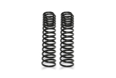2007-18 Jeep JK 4WD 2-DOOR . These American made coil springs are a true Dual Rate design allowing for long travel suspension use offroad with a smooth highway ride. In the first stage of the spring they provide a soft ride with the ability to extend for long travel range. The second stage is designed to handle the payload of the vehicle and address large impact absorption at higher speeds. These Dual Rate Long Travel springs have been designed in conjunction with all Fabtech suspension systems and shocks to eliminate the need for spring retainers or limiting straps. They stay seated though out the suspension travel and articulation range. Available in Crawler Long Arm and Trail Short Arm systems. Features: True Dual Rate Long Travel design. Comfort ride with carrying capacity. Allows for maximum articulation and travel. American made quality. 3" Front & Rear Long Travel Coil Springs.