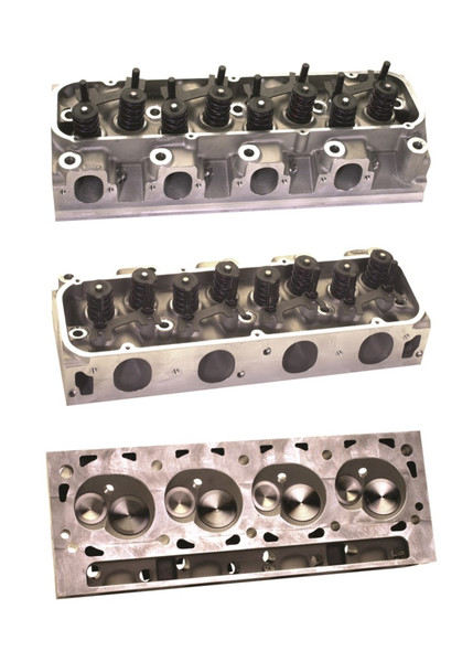 Ford Racing teamed up with Jon Kaase to redesign their 429 Cobra Jet cylinder heads, and the results are these Super Cobra Jet heads. They feature revised valve angles and locations to reduce cylinder wall shrouding and improve flow, along with redesigned combustion chambers to accommodate the more centrally located valves. These heads use the same valves, valve springs, retainers, and 7/16 in. stud-mounted roller rockers as the current Ford Racing 429 Cobra Jet heads, and the standard Cobra Jet intake and exhaust manifolds bolt right on. This new design offers a 25-50 HP increase over current Cobra Jet heads, depending upon displacement and camshaft.