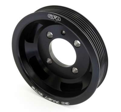 It might be hard to imagine how reducing the mass of a pulley makes a car go faster, but accelerating a heavy factory pulley from say 3000-7000 RPM in a second or two saps a measurable amount of torque. GFB Lightweight Pulleys reduce inertia by up to 85 percent, so most of the torque that used to accelerate the pulley can now be applied to the wheels.