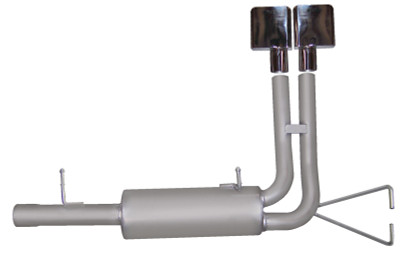 Your truck deserves a super serious Performance Exhaust System. Gibson Super Truck Exhaust System offers a loud deep powerful sound with dual tailpipes that exit in front of the rear tires with Stainless Tip. You can expect a race rumble tone with improved acceleration and increased horsepower gains. Typical dyno tested horsepower gains average 10-15 and 15-20lb-ft of increased torque. Hassle free, bolt-on installation. No welding required. Backed by a Lifetime Limited Warranty. Not recommended for towing. Noise level may exceed 95-decibel standard.