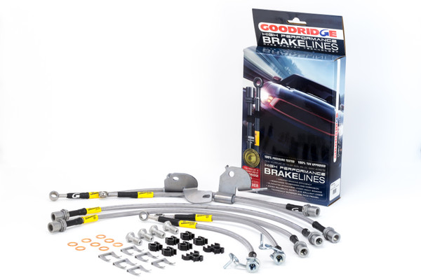 Goodridge stainless steel brake or clutch hose kits are available to suit all models of car, whatever the make. Kits feature the finest quality hose, consisting of a PTFE inner with a stainless steel outerbraid. This eliminates the spongy pedal feel under arduous conditions, giving greater braking efficiency or clutch operation as well as providing superior resistance to abrasion and corrosion. These kits, therefore, not only provide the reliability and safety demanded but offer brilliant good looks that improve the appearance of any installation. Most brake and clutch lines car kit specifications are on file but any additional information is always appreciated