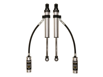 ICON Vehicle Specific (V.S.) 2.5 Series shocks are designed and built to give your vehicle outstanding performance off-road and a smooth ride on the street. These shocks are configured specifically for each application in both length and damping tune. Like all ICON'S Shock Absorbers, V.S. 2.5 Series shocks are 100% rebuildable and 100% revalveable. For piggyback and specific remote reservoir applications, ICON'S unique use of a 6061 billet aluminum manifold a few inches below the top cap of the shock creates an internal Bump Zone that when used creates an additional 20% of damping force. This additional force helps prevent harsh bottom outs and controls the suspension when compressing at high velocity. If you are looking for a more user defined tune, consider looking into the Compression Damping Control Valve (CDCV) or the Omega Series bypass shocks.