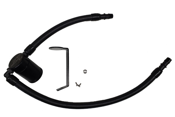 During the process of venting crankcase pressure back through your intake track, large amounts of oil, in the form of vapors can gather/accumulate in your intake tube, intake manifold runners and even dilute your gas, lowering its octane level. This happens on all engines and is even worse with forced inducted vehicles (supercharged and turbocharged) as crankcase pressures are increased. To combat this, we have developed an oil separator of our own design. Milled from solid billet aluminum this is a rock-solid piece. It has a knurled tank base for easy removal to drain the spent oil and an O-ring seal to prevent any leaks. Filtering consists of a fine mesh stainless steel screen that traps fine oil vapors and releases them once heavy enough to fall. They then pass through a 1/2" thick 1/16th" aluminum honeycomb filter where they grow every larger and then fall into the bottom. By the time the oil gets through the filter it's too heavy to be passed on into the intake. The tank holds 3 oz of fluid, while that may not sound like a lot, you shouldn’t see that much oil in your PCV system. Drain it every 2000-3000 miles and you will never come close to filling it.