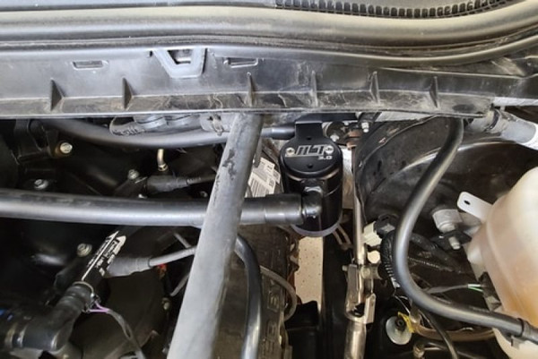 During the process of venting crankcase pressure back through your intake track, large amounts of oil, in the form of vapors can gather/accumulate in your intake tube, intake manifold runners and even dilute your gas, lowering its octane level. This happens on all engines and is even worse with forced inducted vehicles (supercharged and turbocharged) as crankcase pressures are increased. To combat this, we have developed an oil separator of our own design. Milled from solid billet aluminum this is a rock-solid piece. It has a knurled tank base for easy removal to drain the spent oil and an O-ring seal to prevent any leaks. Filtering consists of a fine mesh stainless steel screen that traps fine oil vapors and releases them once heavy enough to fall. They then pass through a 1/2" thick 1/16th" aluminum honeycomb filter where they grow every larger and then fall into the bottom. By the time the oil gets through the filter it's too heavy to be passed on into the intake. The tank holds 3 oz of fluid, while that may not sound like a lot, you shouldn’t see that much oil in your PCV system. Drain it every 2000-3000 miles and you will never come close to filling it.