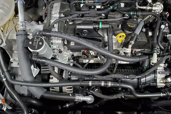 J&L 2021-2022 Ford Bronco 1.5L EcoBoost Passenger Side Oil Separator 3.0 - Clear Anodized - 3043P-C
