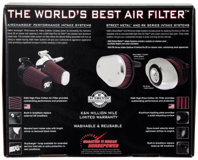 K&N FIPK air intakes for select Harley-Davidson Touring, Softail, Twin-Cam and Sportster motorcycle models are guaranteed to increase power. They eliminate the restrictive stock OE air cleaner and replace it with a K&N high-flow air filter and mandrel bent aluminum intake tube, which allows more air to flow directly to the engine. These air intakes include a billet aluminum throttle-body mounting plate and mounting hardware. Installation couldn't be easier; it usually takes 90 minutes or less. K&N high-flow intake systems give your Harley an aggressive appearance and killer style. This model features a polished chrome aluminum intake tube. K&N FIPK air intakes are CARB exempt and street legal in all 50 states.