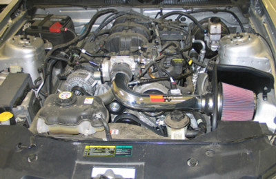 The K&N 69-3524TP Typhoon air intake system is a free-flowing, mandrel-bent aluminum tube air induction system designed to fit some Ford Mustang GT models. The restrictive factory air filter and air intake housing are replaced by the K&N Typhoon air intake which is designed to dramatically reduce air flow restriction as it smoothes and straightens air flow. This allows your engine to inhale a larger amount of air than the factory air intake. More air means more usable power and acceleration throughout the engine's RPM range. The 69-3524TP air intake comes with a chrome topped K&N high-flow air filter and a heat shield that installs into the previous air box space. Air is directed through the intake tube into the engine's throttle body for a guaranteed power gain. The intake tube has an attractive chrome-like finish that's made to last and it accommodates the factory mass air sensor and a couple of replacement silicone vent hoses. The oversized cone shaped air filter can be used for up to 100,000 miles before servicing is needed depending on driving conditions. This air intake is relatively easy to install usually in 90 minutes or less using existing factory mounting points. The tools needed are a screwdriver and ratchet set. Some Typhoon air intakes are not legal for sale or use in California and other states adopting California emission standards while others are CARB exempt and 50 state legal. Check the K&N catalog or website for vehicle applications and specific CARB status for each vehicle and air intake.
