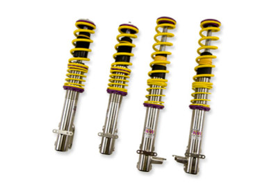 Cutting-edge motorsports technology -or more performance on the road. Like every suspension product developed by KW automotive and manufactured in Germany, the KW Variant 3 Coilover suspension kit also provides a significant improvment on the road. Thanks to the high-quality dampers, springs, and elastomer spring elements, pitching and rolling movements during load changes such as evasive maneuvers, cornering, acceleration, and braking are significantly reduced. The braking distances are also shortened. Thanks to improved support and feedback, drivers not only feel more confident but driving in everyday life is improved. With compression and rebound stage damping, that can be set separately and independently of each other, the damper setup can be customized to your personal driving preferences or vehicle changes such as weight, tire characteristics, or altered vehicle rigidity. True performance optimization is only possible with this unique, patented system. For example, this allows the compression damping force to be increased and get more grip from the tires, to improve cornering behavior and reduce squat without simultaneously altering the rebound stage damping which is optimally matched to the spring rate ? a scenario which results in reduced grip and the associated loss of performance. The KW Variant 3 INOX-LINE coilover kit is the ideal tool for performance-oriented drivers and experienced tuning enthusiasts who place a strong emphasis on the overall performance of their suspension. The Variant 3 features patented TVR-A and TVC-A technology -hat provides separately adjustable rebound and compression damping. The extensive Adjustment -ange of the independently configurable rebound and compression make it easy to directly influence the steering behavior, directional stability, grip and handling characteristics for confident and repeatable results at the limit of driving dynamics.