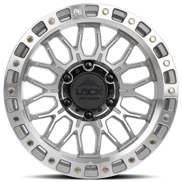 The Lock Off-Road Wheels Combat model incorporates a bold mesh-block pattern, utilizing intricate channeling for striking spoke details and reinforced structure. Drawing inspiration from modern military design, the Lock Combat seamlessly integrates with a timeless outer lip featuring vented chambering technology while enduring off-road specific design elements. Offered in Matte Black, Matte Gunmetal, and Matte Bronze, the TACT-coated finishes ensure a blend of visual appeal and durability, capable of withstanding extreme elements.