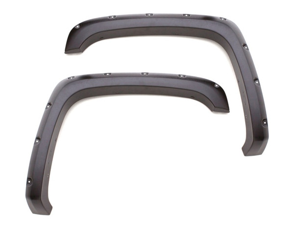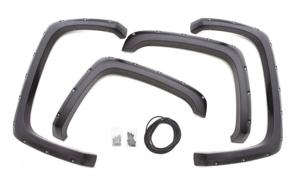 LUND's RX-Rivet Style fender flares are the perfect addition to lifted trucks, giving them a bold, unmistakable appearance. Designed for larger tires and wheels, LUND's RX-Rivet Style flares will transform your Chevy Silverado, Toyota Tundra, GMS Sierra, Dodge Ram or Ford truck into an off-road, gutsy-appearing ride. This rivet style fender flare provides extra coverage on trucks with larger wheel and tire packages. Update your vehicle with an awesome, wide-body look while shielding it from road debris. The extra height of the flares is also a great quick fix for covering rust and minor damages on the fender. This distinctive fender flare, available in four-piece sets, is designed to not only add a rugged, off-road look, but also protect the sides of your vehicle from road debris and harsh outdoor elements. LUND's RX-Rivet Style fender flares are made with ABS thermoplastic material to allow for maximum durability – providing a dense, hard and scratch-resistant surface, flexible enough to bend instead of shattering. This flare is built to last and is backed by a Limited Lifetime Warranty. Straight from the die, the flare has a satiny finish (standard) that looks great, but is easily prepped and painted for any sort of automotive paint. The flare is also available in a textured finish. Maintenance is easy! You can use any detergent you use to wash your vehicle to clean the flares as well.