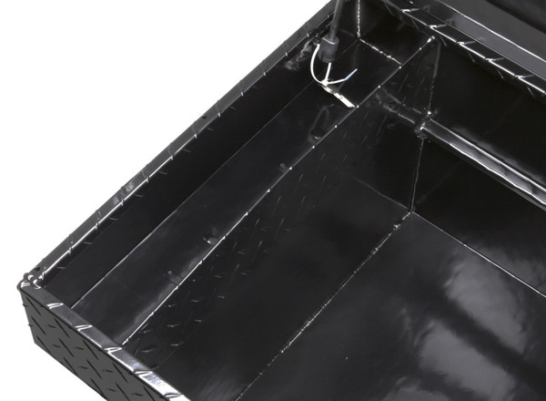 Constructed of thick diamond plate aluminum, fully welded seams, and a reinforced dome style lid with high quality foam weather stripping; the Ultima storage box is hardworking and reliable. Designed with a full length piano style hinge, adjustable lid stickers, and twin gas struts providing a smooth a self-rising lid upon opening -even in cold weather, the Ultima provides years of dependable service. Boxes include a deep molded tool tray that provides storage for small items and sits above the ledge, allowing for maximum storage inside the box.