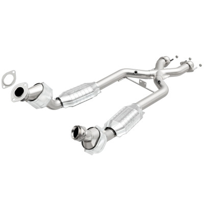 MagnaFlow HM Grade Federal/EPA Compliant Direct-Fit Catalytic Converter 23163 helps keep the check engine light off. DIY installation is easy with the proper tools (no cutting or welding required). With features including mandrel-bent tubing to eliminate flow restrictions and stainless steel construction to resist corrosion, you can have confidence in the quality of this catalytic converter. Using state-of-the-art 3D scanning systems in the design process, the MagnaFlow metrology department ensures this new part to fit and function like the original equipment.This direct-fit catalytic converter is designed specifically for the 1996-1998 Ford Mustang. The included gaskets & hardware reduce the possibility of a leaking seal while avoiding the need to reuse corroded factory parts for installation. This replacement part is designed to meet or exceed Federal emissions requirements set forth by the EPA, complying with legal standards for OBDII Federally registered vehicles with Federal/EPA Emission systems.
