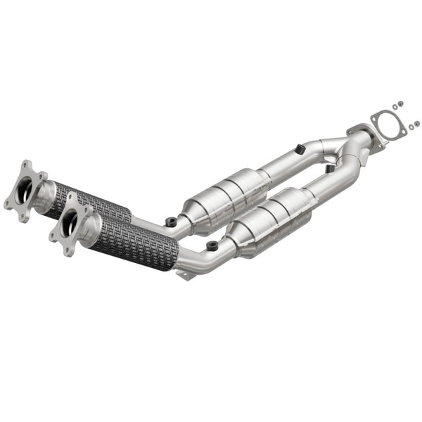 Keep the check engine light off with MagnaFlow HM Grade Federal/EPA Compliant Direct-Fit Catalytic Converter 24156. With features including free-flowing mandrel-bent tubing and highly corrosion resistant stainless steel construction, easily install this spun body converter yourself using the proper tools, no cutting or welding required. MagnaFlow's state-of-the-art metrology department uses the latest 3D scanning systems during research and development, so you can be confident that your new part will fit and function like the original equipment. By replicating the OE spun body design, the single laser fusion weld greatly reduces the possibility of a leak, and our compact, low-mass design also allows for greater thermal efficiency.This direct-fit catalytic converter is designed specifically for the 1999-2001 Volvo S80. The included gaskets & hardware reduce the possibility of a leaking seal while avoiding the need to reuse corroded factory parts for installation. This replacement part is designed to meet or exceed Federal emissions requirements set forth by the EPA, complying with legal standards for OBDII Federally registered vehicles with Federal/EPA Emission systems.
