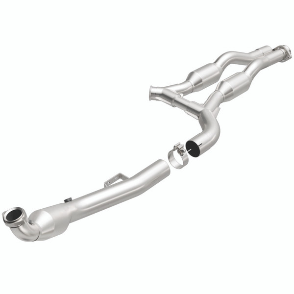 Keep the check engine light off with MagnaFlow HM Grade Federal/EPA Compliant Direct-Fit Catalytic Converter 24334. With features including free-flowing mandrel-bent tubing and highly corrosion resistant stainless steel construction, easily install this spun body converter yourself using the proper tools, no cutting or welding required. MagnaFlow's state-of-the-art metrology department uses the latest 3D scanning systems during research and development, so you can be confident that your new part will fit and function like the original equipment. By replicating the OE spun body design, the single laser fusion weld greatly reduces the possibility of a leak, and our compact, low-mass design also allows for greater thermal efficiency.Designed to fit the 2003-2006 Mercedes-Benz E55 AMG and 2006 Mercedes-Benz CLS55 AMG, this direct-fit catalytic converter also interchanges with OE part 211 490 25 19. Hardware is included to eliminate the hassle of working with corroded factory parts. This replacement part is designed to meet or exceed Federal emissions requirements set forth by the EPA, complying with legal standards for OBDII Federally registered vehicles with Federal/EPA Emission systems.