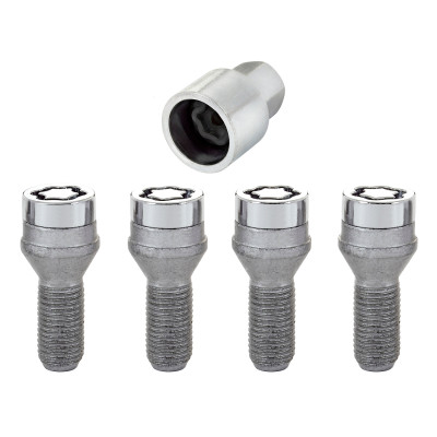 Protecting the world's finest wheels and tires from theft since 1964.; Wheel Lock bolts are designed in USA and manufactured in EU and USA.; Presently, McGard is an Original Equipment wheel lock supplier to most automobile brands around the world.; These easy-to-use wheel locks function like regular lug bolts, but require a special key tool for installation and removal.; The steel collar on the user friendly key guides the key into the lock pattern.; The collar holds the key in alignment for easy installation and removal.; The computer generated key designs allow for an infinite number of key patterns.; The extra narrow pattern groove on the lock resists the intrusion of removal tools into the pattern.; Every McGard wheel lock utilizes fully machined, restricted chemistry steel made specifically for McGard and through-hardened for its unsurpassed level of security.; McGard's plating process includes several layers of nickel and one layer of microporous chrome producing a superior finish while protecting against rust.; The bolt stem has a dacromet coating to meet O.E.M.; standards.; For use with steel or aluminum wheels with a tapered seat.; Matching Lug Bolts are available in Installation Kits and Bulk Boxes of 50.; This product contains globally sourced materials/components.