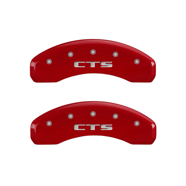 MGP 4 Caliper Covers Engraved Front Cursive/Cadillac Engraved Rear CTS Red finish silver ch - 35011SCTSRD