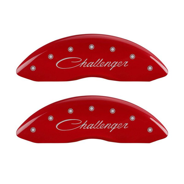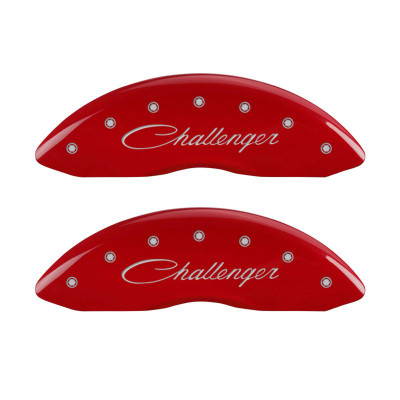 MGP 4 Caliper Covers Engraved Front Cursive/Challenger Engraved Rear RT Red finish silver ch - 12181SCLRRD