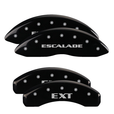 MGP 4 Caliper Covers Engraved Front Escalade Engraved Rear EXT Black finish silver ch - 35014SEXTBK