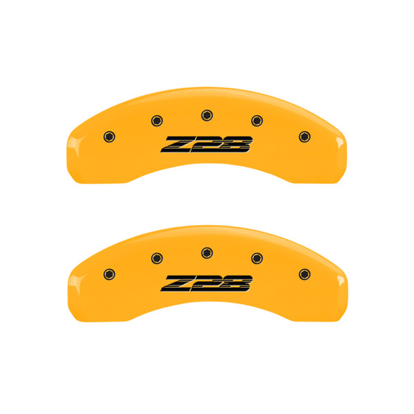 MGP 4 Caliper Covers Engraved Front Gen 5/Camaro Engraved Rear Gen 5/Z28 Yellow finish black ch - 14011SZ85YL