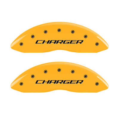 MGP 4 Caliper Covers Engraved Front & Rear Daytona Yellow Finish Black Char 2006 Dodge Charger - 12001SDAYYL