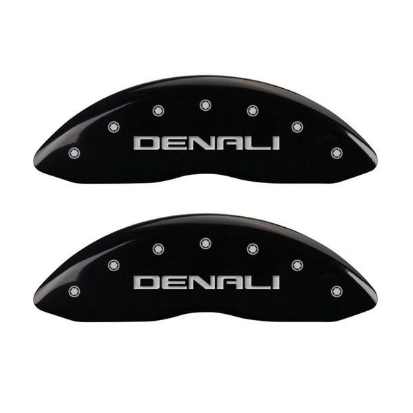 MGP 4 Caliper Covers Engraved Front & Rear Denali Black finish silver ch - 34004SDNLBK