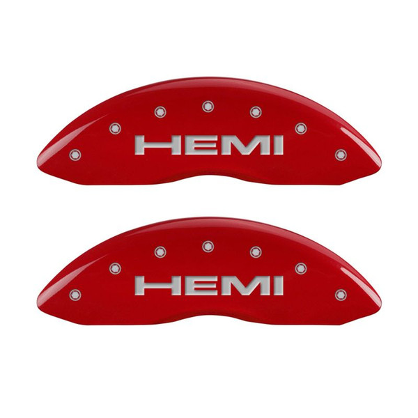 MGP 4 Caliper Covers Engraved Front & Rear Hemi Red finish silver ch - 55001SHEMRD