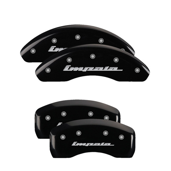MGP 4 Caliper Covers Engraved Front & Rear Impala Black finish silver ch - 14223SIMPBK