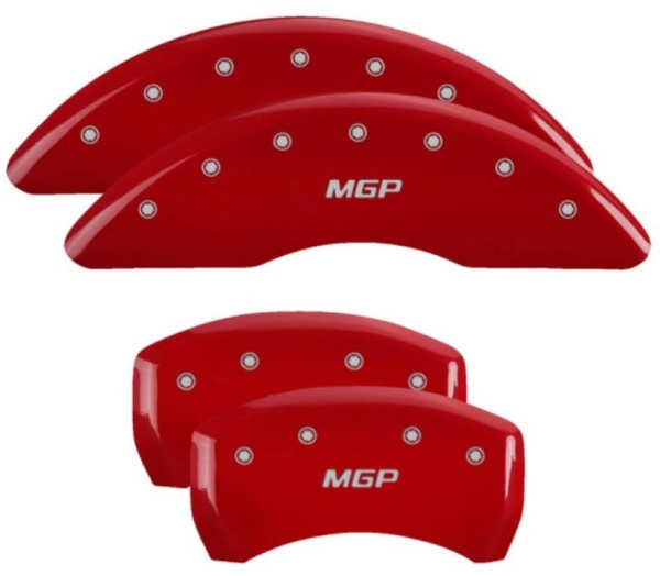 Set of 4 caliper covers, Engraved Front and Rear: MGP, Red powder coat finish, silver characters