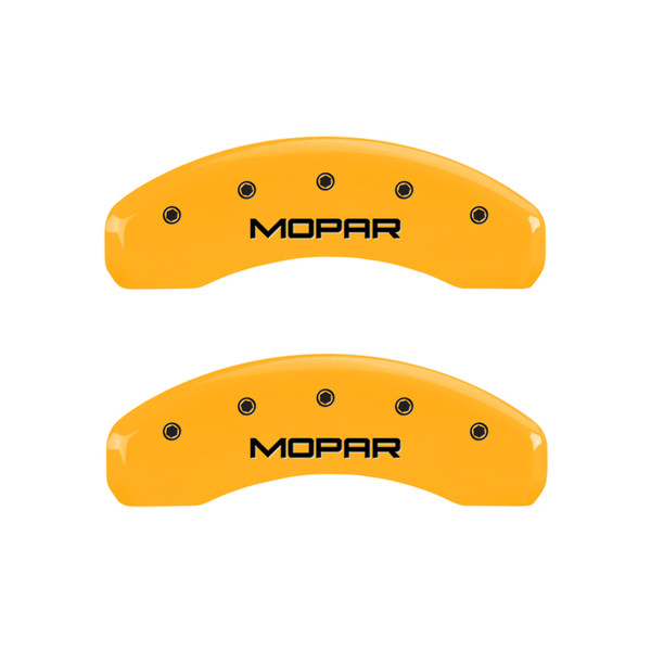 MGP 4 Caliper Covers Engraved Front & Rear Mopar Yellow Finish Black Char 2004 Jeep Wrangler - 42014SMOPYL