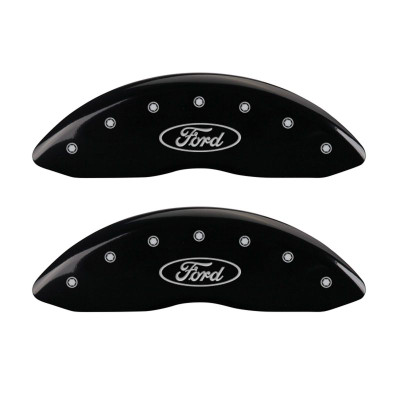 MGP 4 Caliper Covers Engraved Front & Rear Oval logo/Ford Black finish silver ch - 10009SFRDBK