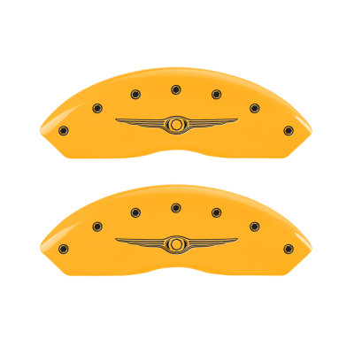MGP 4 Caliper Covers Engraved Front & Rear Style 1/Chrysler Wing Yellow finish black ch - 32021SCW1YL