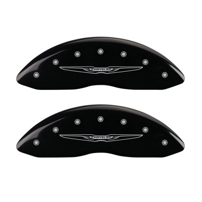 MGP 4 Caliper Covers Engraved Front & Rear Style 2/Chrysler Wing Black finish silver ch - 32023SCW2BK