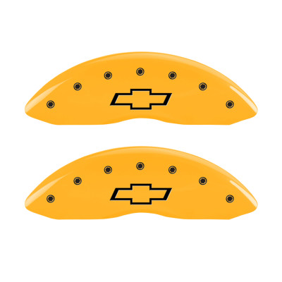 MGP Front set 2 Caliper Covers Engraved Front Bowtie Yellow finish black ch - 14213FBOWYL