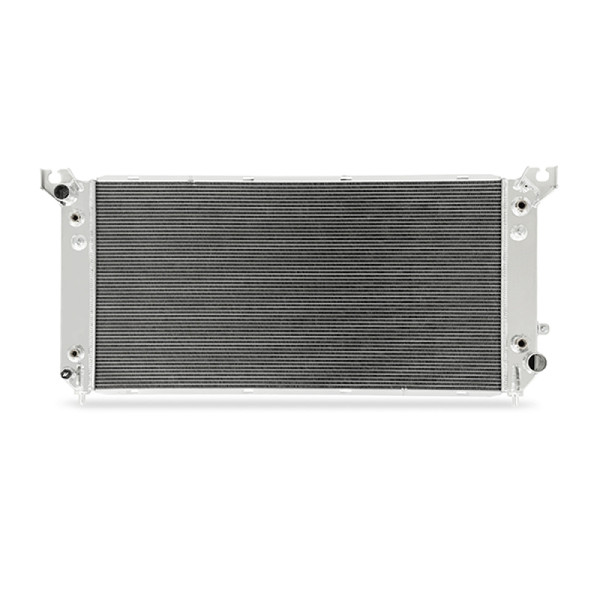 The Mishimoto 2014+ Chevrolet Silverado 1500 V8 performance aluminum radiator is the ideal upgrade for the stock Silverado radiator. This direct-fit radiator is designed and specifically engineered to maximize the cooling efficiency of your 2014+ Silverado whether it's your daily driver, work truck, or dedicated off-road vehicle. Thanks to a 2-inch thick core, the Mishimoto 2014+ Silverado 1500 V8 radiator boasts a 45.45% increase in coolant capacity over the stock radiator. Tube and fin surface area is also increased by 92.8% and 74.5% respectively over stock to make the most use of the air flowing through your Silverado's grille. The all-aluminum construction, along with strutted tubes in the top and bottom 8 rows, make this radiator tough enough to handle anything you can throw at it. The built-in oil and transmission coolers with installed stock-style fittings make installation a breeze. As with all Mishimoto products, this radiator is backed by Mishimoto's Lifetime Warranty. So, whether you're towing your weekend toys, ferrying the kids to school, or bombing dunes, you can rest easy knowing that your 2014+ Silverado 1500's engine is cooled by Mishimoto.