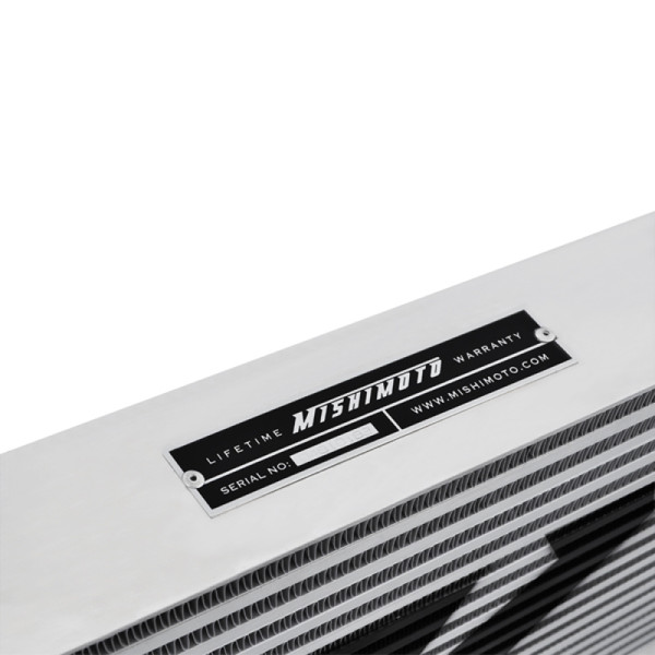 The Mishimoto R-Line intercooler provides the perfect cooling capacity needed for supercharged and turbo charged vehicles.Constructed of 6061 aircraft-quality aluminum for extreme durability, the Mishimoto R-Line intercooler will efficiently reduce induction air temperatures, while significantly improving engine output.Mishimoto front-mount intercoolers are precision TIG welded, offering an enhanced level of performance.The R-Line intercooler will provide the ideal cooling capacity, while safely increasing horsepower and giving that extra boost that every driver appreciates.Note: For your taste, only one side of the intercooler has the Mishimoto logo.
