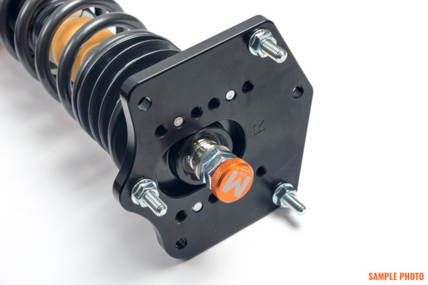 Are you using your vehicle on the track? Or perhaps you’re after a combination of using your car for CLUBRACING and seeking the ideal road balance for daily driving. In that case, the MOTON 1-WAY SUSPENSION is the perfect choice for you. Maximize grip by controlling rebound and rideheight of your car. MOTON has an elevated top guide with a helper piston to reduce friction, resulting in reduced internal wear within this suspension. Ensuring stable and consistent damping performance. This set of NON-INVERTED suspension also includes, where applicable, camber-adjustable front Top Mounts and solid rear Top Mounts. The camber adjustment will offer you more wheel adjustment and allow this geometry to be altered to transform front -end grip. In this set front and rear dampers utilize a coilover design. By choosing this design you prioritize adjustability and the performance of your car. Coilovers which will offer more adjustability for both damping settings and ride height, and typically provide more consistent and predictable handling characteristics. The initial setup for setting and spring rates is rooted in our extensive development and testing process. Individual preferences can easily be fine-tuned by making adjustments to the rebound knob or altering the ride height. You can adjust the rebound, means you can control the return to extension of your dampers, enabling you to attain the ideal road balance tailored to your specific requirements. With 12 distinct positions to choose from, each adjustment delivers distinct feedback and a unique driving experience. MOTON Suspension is a monotube design. This is a benefit for you because these dampers offer a large piston to control the adjustability of rebound damping. There is no aeration or foaming in monotube dampers, this will result in a more responsive valving. MOTON high pressure dampers offers additional resistance, based on the driving conditions. Springs are included.