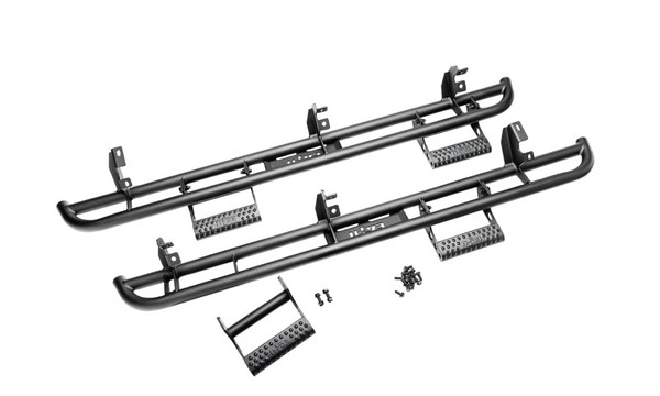 N-FAB RKR Rails Provide superior protection while enhancing the look of the vehicle. Constructed using 0.12 in. wall, 1.75 in. tubular steel, RKR Rails are treated inside and out for extra corrosion resistance so you know they are built to last. Finished with a durable textured black powder coat, N-FAB RKR Rails look as good as they perform both on and off-road. Making a great product even better, N-FAB offers optional Detachable Steps that are compatible with all N-FAB RKR Rails and Factory Toyota FJ Rock Rails. These steps offer convenient vehicle access for daily use and can be removed to allow for maximum group clearance when off-road.
