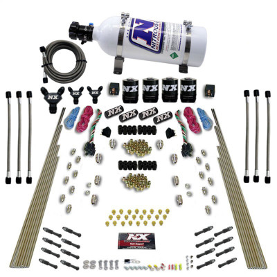 The NX Dry Direct Port System provide nitrous directly into each cylinder through a set of high flow NX Dry Nozzles. , These systems are designed to be used with an engine management system that can add nitrous enrichment through the engine's fuel system., Includes jets for 50-300hp per stage as well as a tech card with lbs/hr flow data for each jet setting., Includes .093 NX Lightning Solenoid, WOT switch, stainless bottle brackets, 4an nitrous feedline, relay, relay harness and all necessary hardware to complete installation., You can get the system with either 1/16 (default) or 1/8NPT nozzles, ,