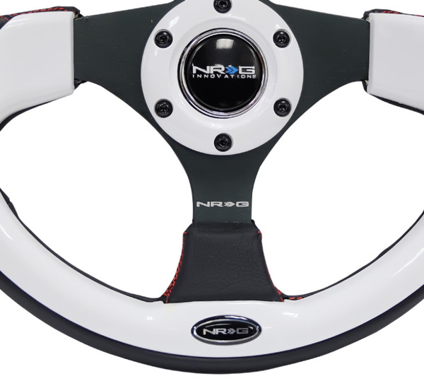 NRG Reinforced Steering Wheel (320mm) Blk w/Silver Trim & 5mm 3-Spoke