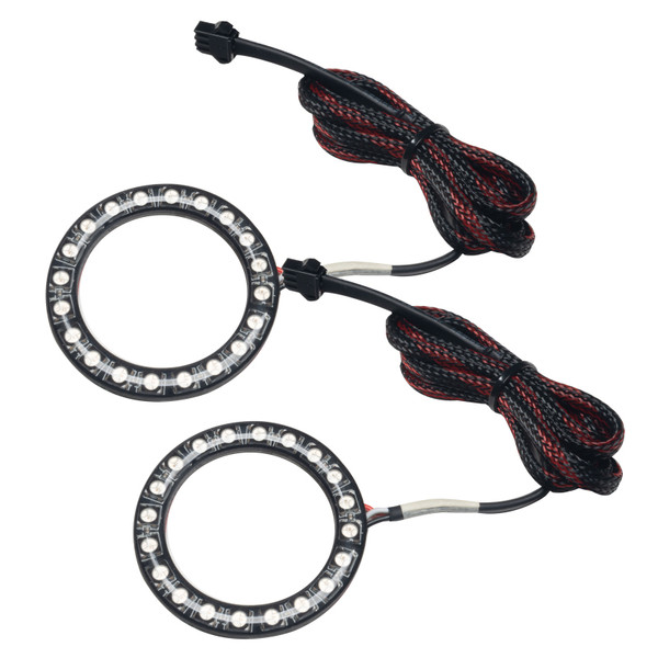 Customize your headlights and fog lights to the max with dynamic styling and a simple, easy install! The ORACLE Lighting Dynamic ColorSHIFT(tm) headlight and fog light halo kit combo for the 2015-2022 Dodge Challenger features our expertly-crafted surface-mount waterproof design and our Dynamic ColorSHIFT(tm) technology for brilliant chasing colors with the best quality LED components. Encased in a special polymer resin, our surface mount halos are completely waterproof (meaning they can function properly even when submerged underwater), and they easily install by attaching directly to the exterior of the light lens using a patent-pending system. We also use advanced LED chips that produce an impressively bright output while consuming less power. This simple process cuts down installation time from hours to just minutes! No removing the headlights, no baking the lights, no cutting the lights! The latest advancement in our expansive lighting modifications, our Dynamic ColorSHIFT(tm) technology allows the user to run multi-color moving patterns. Conveniently controlled through a free smartphone app, the system features over 200 pre-programmed moving patterns as well as static color control and white mode for normal street driving. In addition to the pre-programmed features, the user can also create custom designs through pixel editing in the app. These vividly eye-catching lighting effects are sure to wow any car enthusiast, and the chasing RGB halos are made stress-free by our surface-mount installation and plug-and-play wiring. Connect the ring terminals to the + and - battery terminals, then control your lights with the smartphone app from the included Dynamic ColorSHIFT(tm) controller. Using the latest lighting technology, our cutting-edge halo kits for cars are a great way to personalize your ride with show-stopping looks and industry-leading performance. Stand out from the look-alikes with an ORACLE Lighting halo kit!