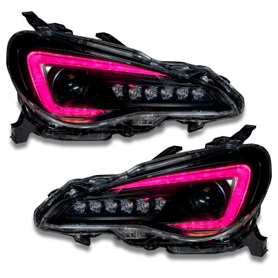 The new Black Bezel 2017-2019 Ford F-250/350 Superduty DYNAMIC ColorSHIFT headlights from ORACLE Lighting. These complete replacement headlights pack a TON of innovative features such as Blacked-Out Housings, Sequential FLOW Turn Signals, and Smartphone Control all in one package!Dynamic ColorSHIFT RGB+A headlights feature individually addressable LEDs which pack a ton of unique features. The Dynamic features allow the user to run multiple moving color patterns through the LEDs, creating a vivid eye-catching lighting effect. The new RGB+A (RGB+ Amber LED) SWITCHBACK line-up features Amber LEDs creating the exclusive Dynamic FLOW turn signal effect.Conveniently controlled through a free smartphone App, the system features over 200 pre-programmed moving patterns as well as static color control and white mode for normal street driving.In addition to the pre-programmed features the user can also create custom designs through pixel editing in the app. Designed to enhance the look without compromising its safety and functions. Reflectivity and visibility are major safety elements required by Law in Automotive Lighting Product Engineering.